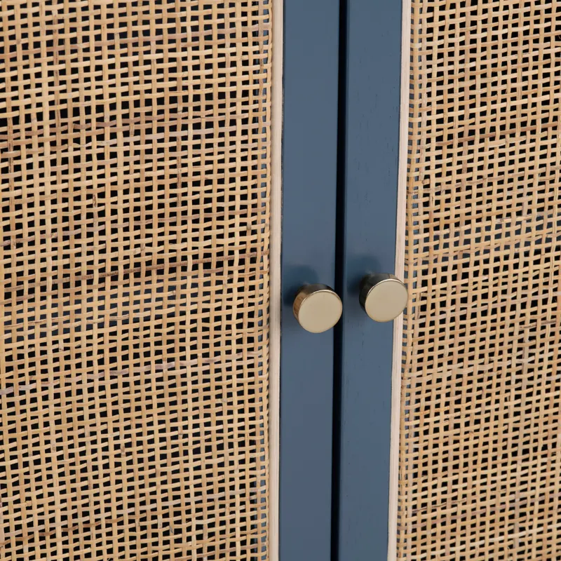 We love this great wood sideboard with its great blue painted finish and cane detailing on the door fronts! Perfect for coastal decor or anywhere you want a little added color! (60"L x 14"W x 32"H)