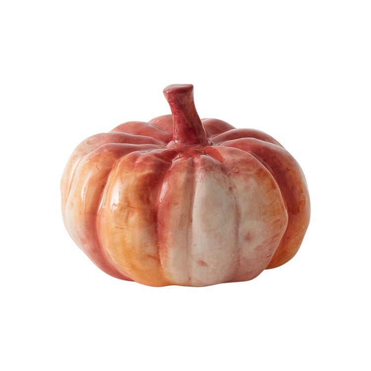 Decorate all season long with these beautiful ceramic pumpkins hand painted with a watercolor technique. Ranging in size, these pumpkins are artful takes on the real thing and have glossy finishes. Each one is unique. Sold individually. (X-Large: 12.5" dia x 11"; Large: 10.5" dia x 8"; Medium: 7.25" dia x 6.75"; Small: 6.25" dia x 4.5")