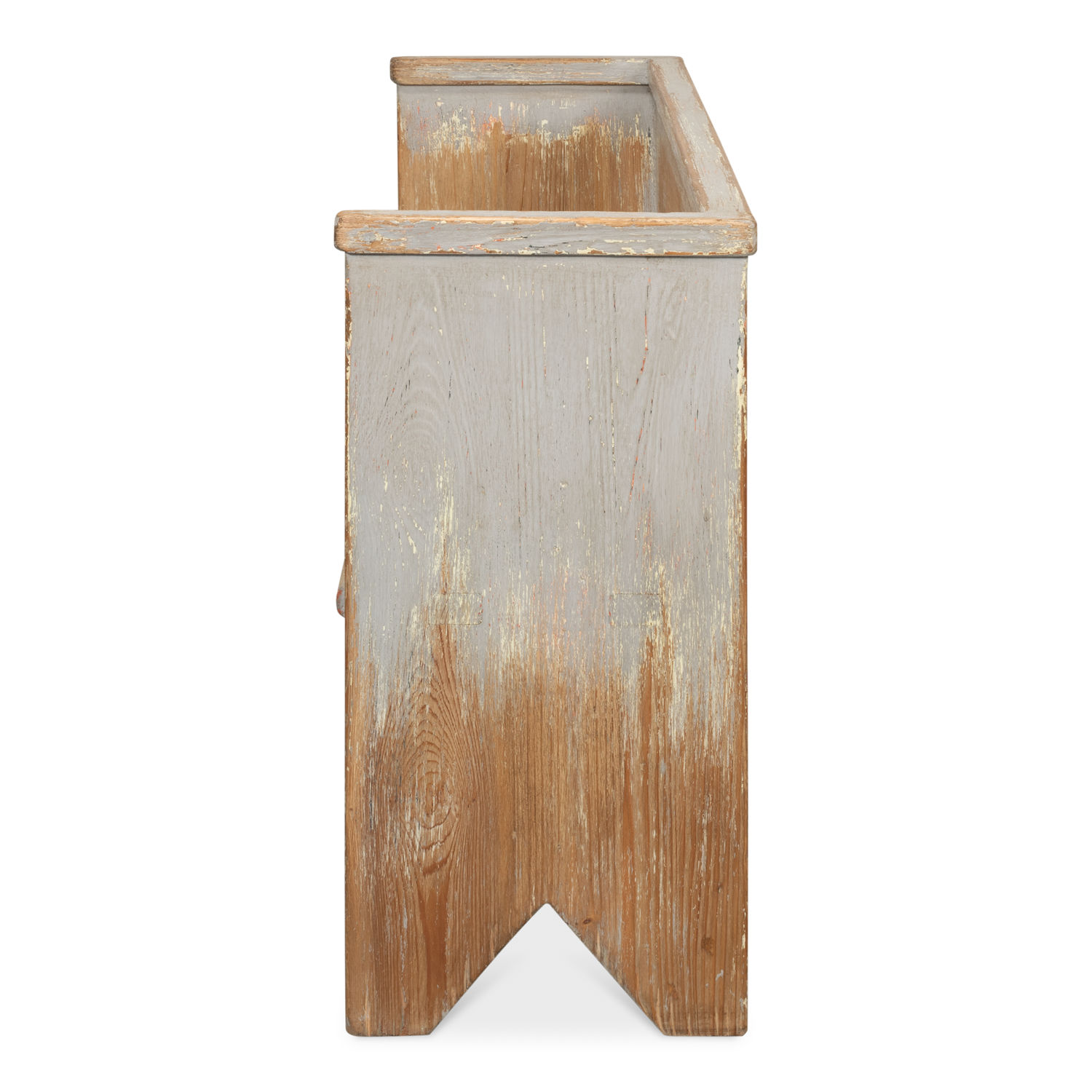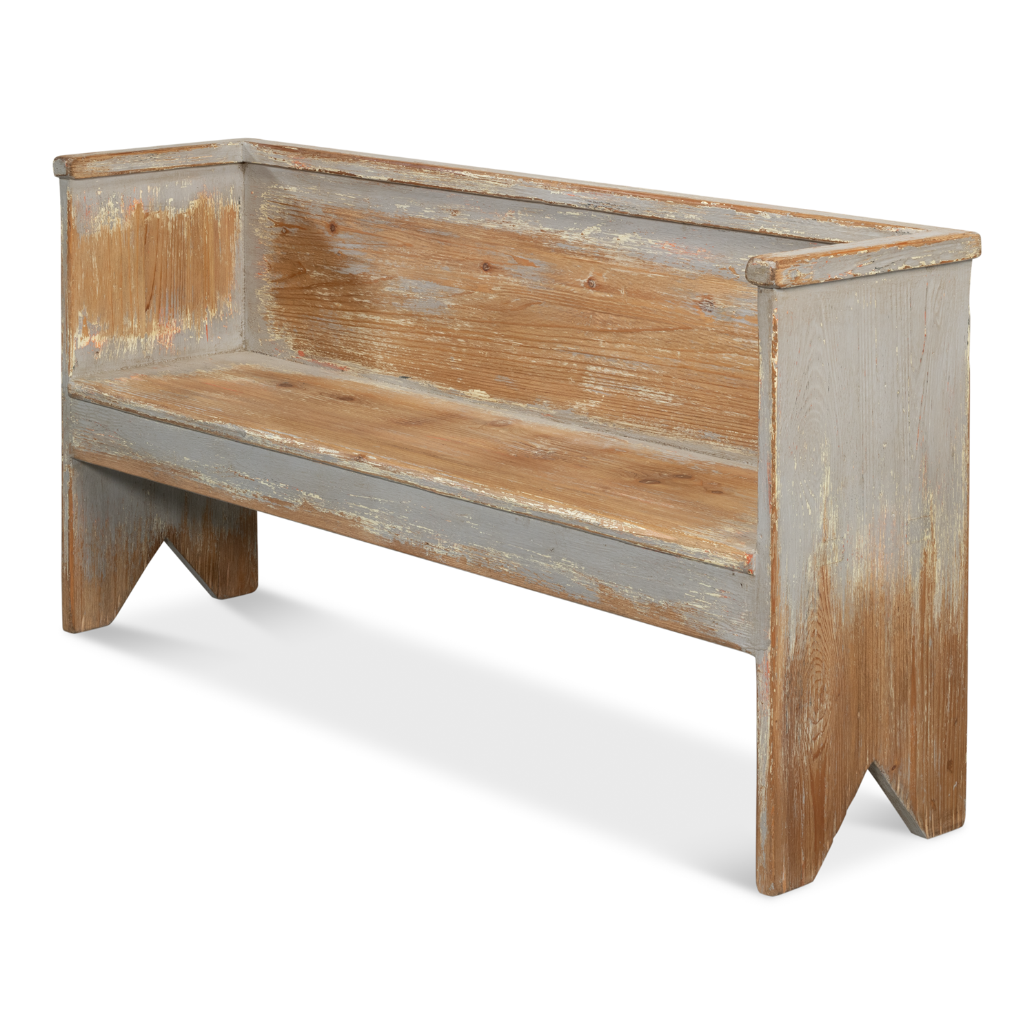 Put this friendly looking bench fashioned out of old reclaimed solid pine in the kitchen or mudroom for convenience or use as dining seating. Inside an entryway or by the back door will work too! Distressed painted finish.