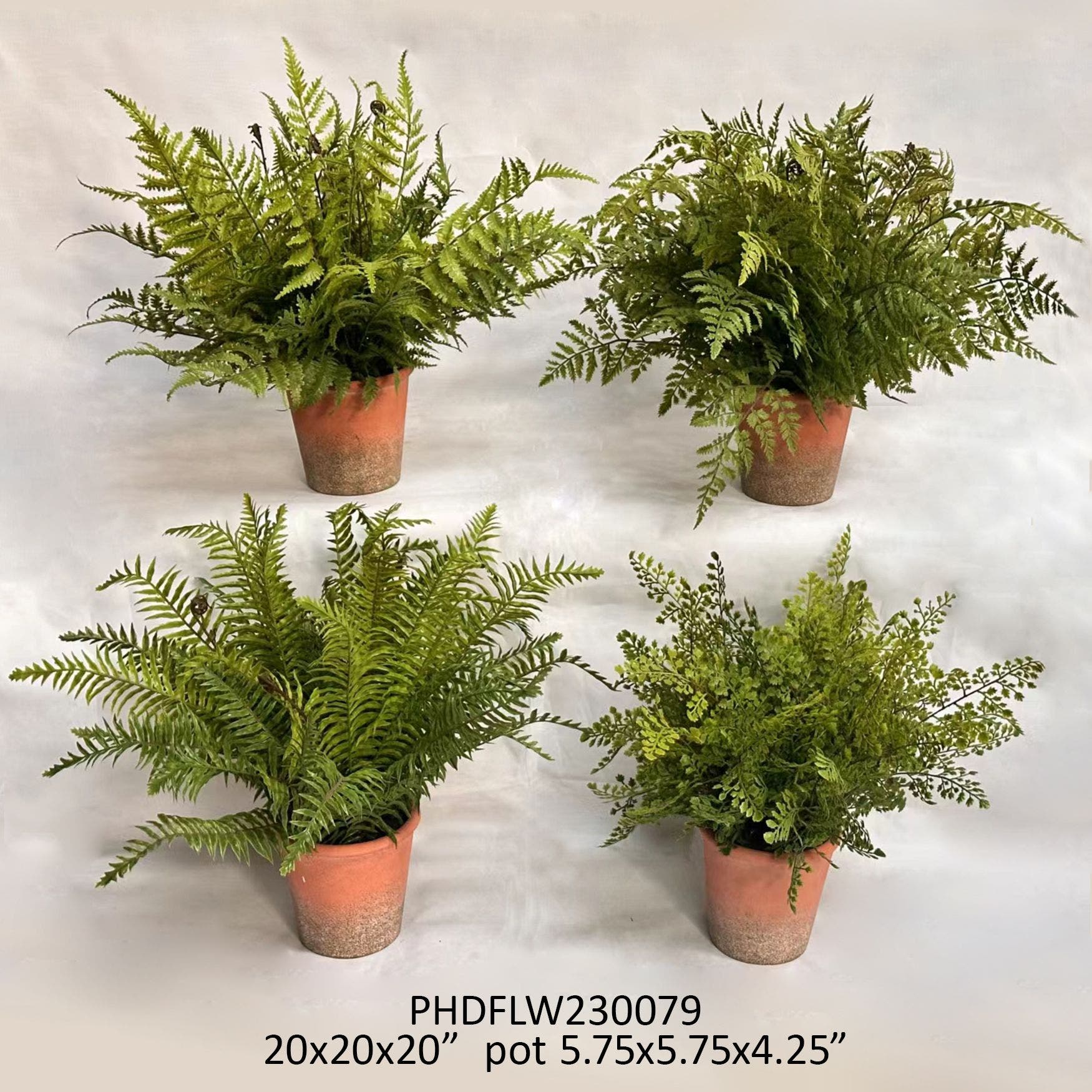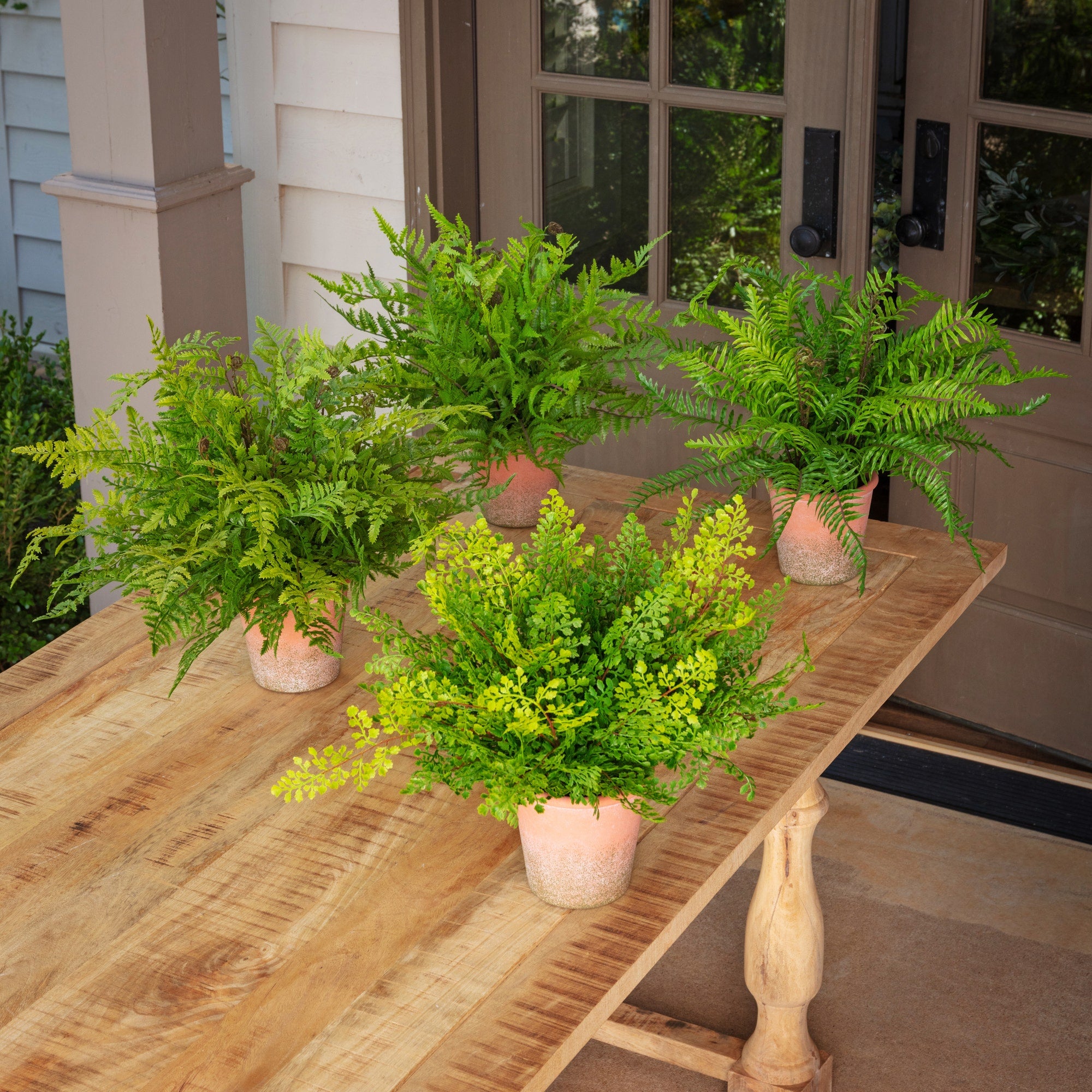 These potted faux ferns are a special assortment of favorite ferns. All have finely divided leaves and a fresh green color. From Porch View Home's Floral Collection.