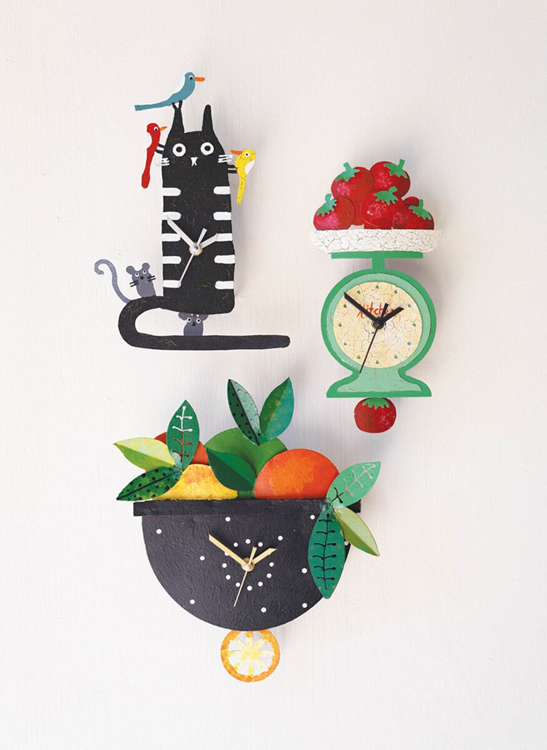 Hand-Painted Tomatoes on Scale Wall Clock with Moving Pendulum