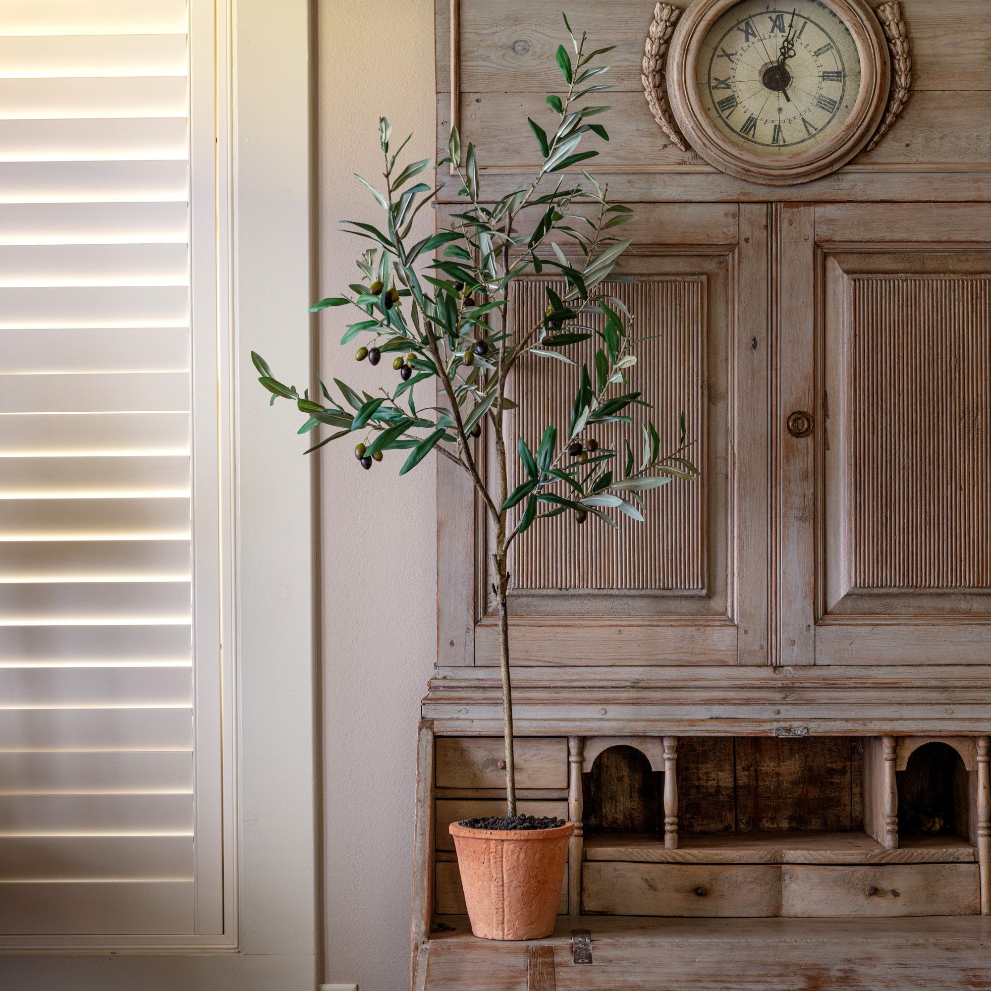 Beautiful new Piazza Potted Olive Tree from Porch View Home. Use it indoors or in a covered outdoor living space for instant style with no green thumb needed! Sold as a set of 2.