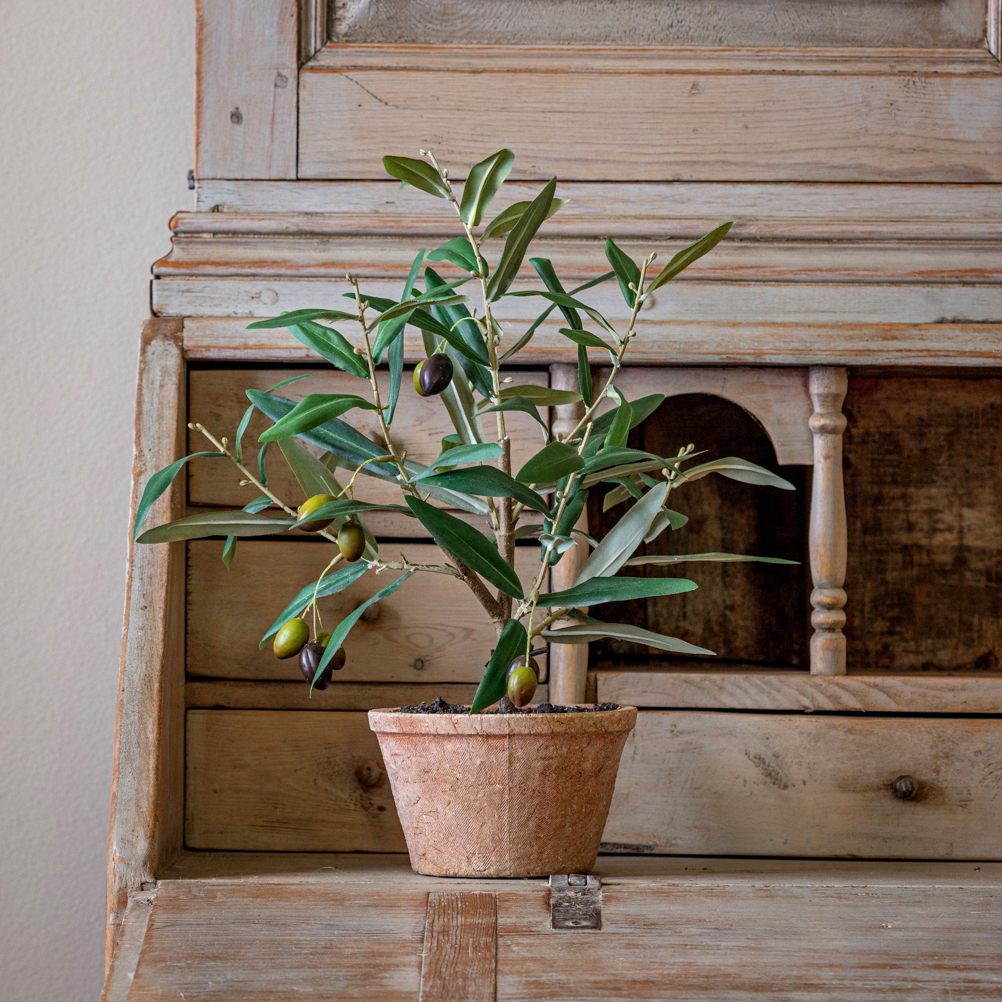 Beautiful new Piccolino Potted Olive Tree from Porch View Home. Use indoors or in a covered outdoor living space for instant style with no green thumb needed! Sold as a set of 6.