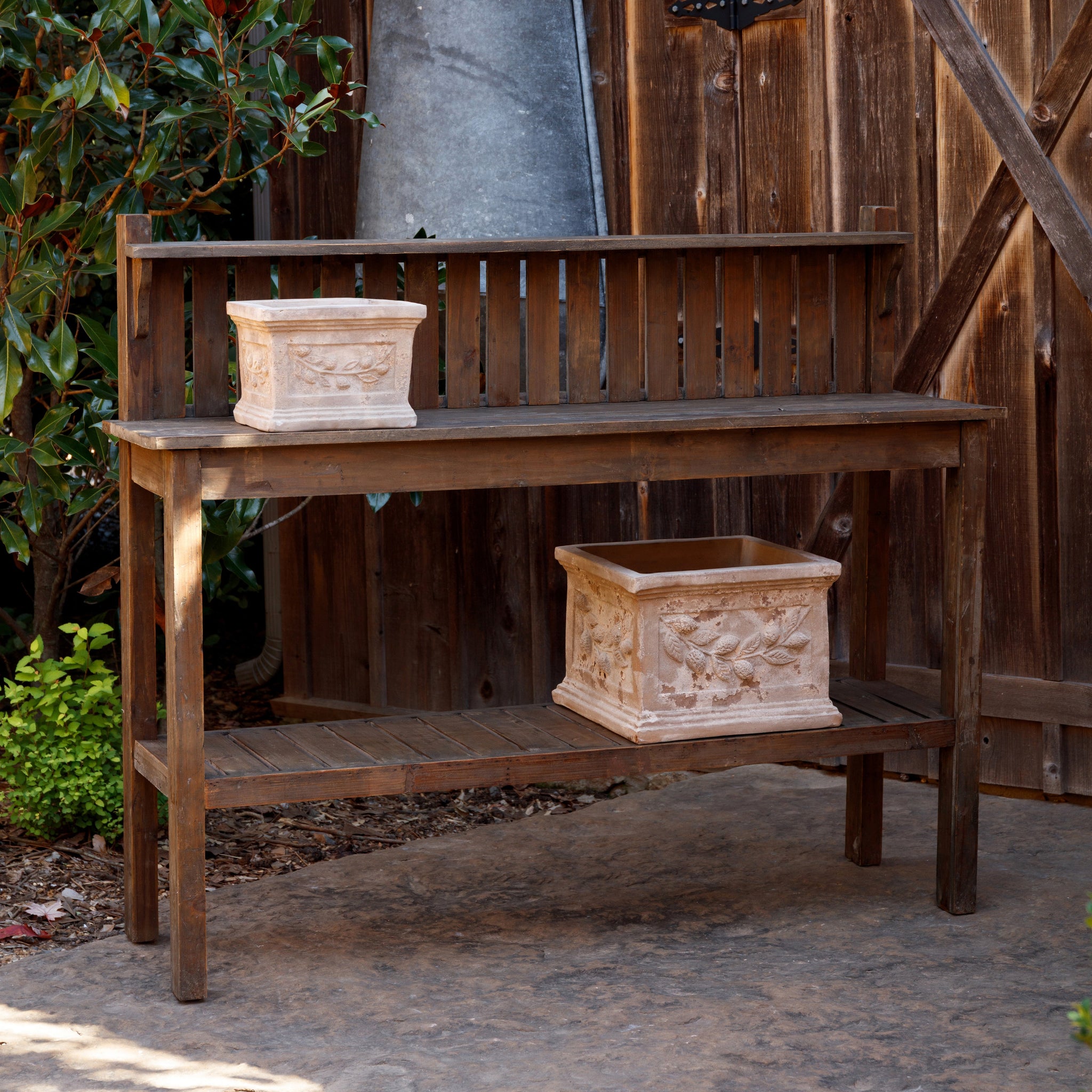 New Wooden Potting Table from Porch View Home is perfect for a garden workspace or for outdoor entertaining!