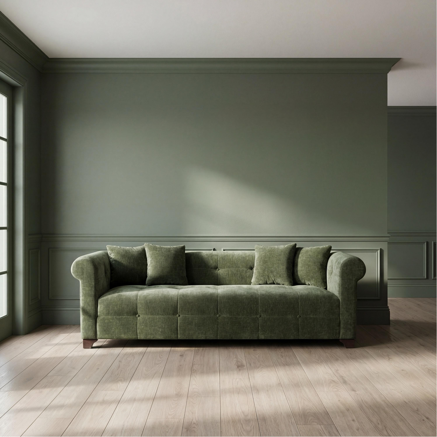 The Tuxedo Sofa embodies a refined blend of comfort and masculine elegance, showcasing exquisite tufting that lends a formal touch to any space. Its strong lines and tailored silhouette create a striking presence, perfect for those who appreciate timeless sophistication. Upholstered in rich textiles like Moss, Mocha, Imperial Indigo, Taupe, and Putty, this sofa enhances its lush detailing, inviting you to indulge in both style and comfort. Each hue adds depth and character, making it a perfect centerpiece for your living area. Light assembly required.