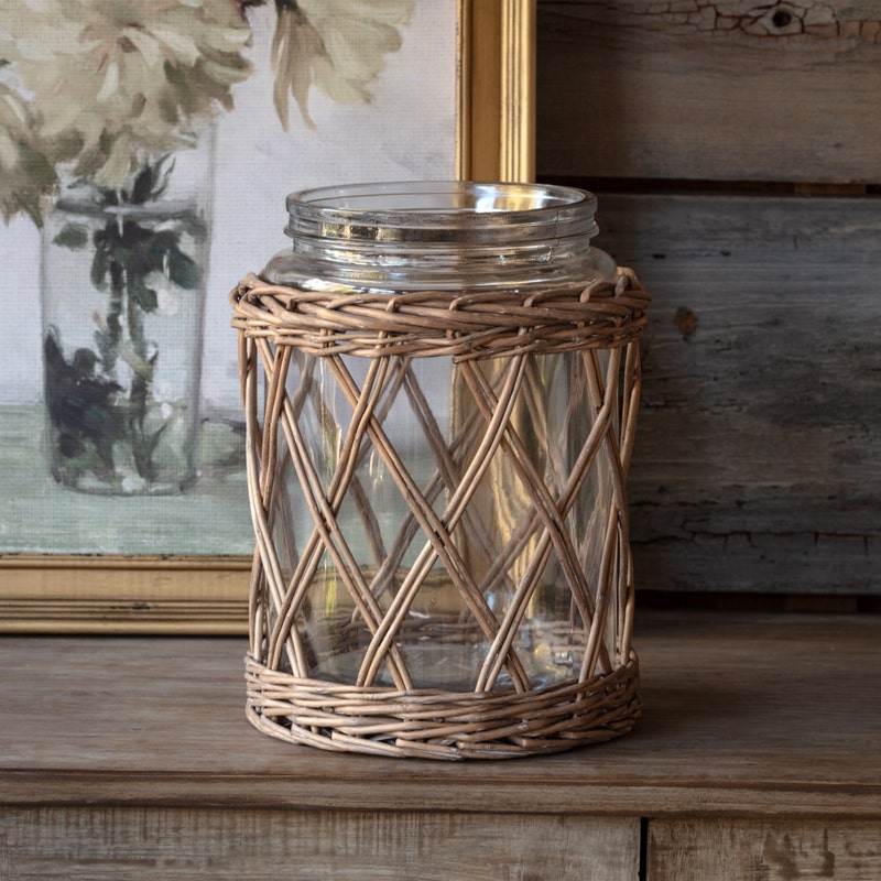 These great glass containers encased in wicker are lovely displayed on their own, but are also perfect for displaying some of your favorite blooms! From Porch View Home. Sold in a box of 4.