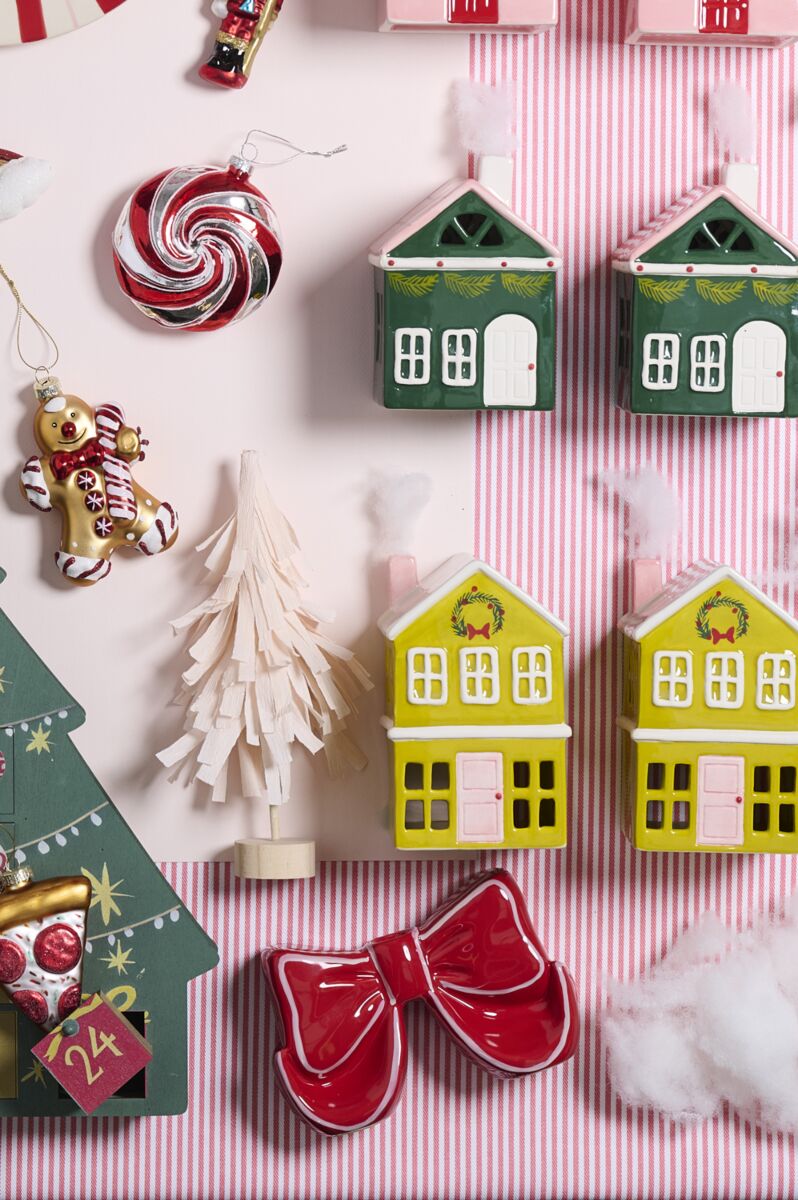 Nothing says festive more than a classic holiday bow! Top off a holiday tablescape with the Big Red Bow Candleholder, a cheerful and classic ceramic bow perfect for holding a taper candle. The playful shape trimmed with hand painted, outline details can be styled on a mantel, dining table, or anywhere a little burst of color is needed. Mix and match with other bows and candy themed pieces in the holiday collection for a fresh take on Christmas decor!