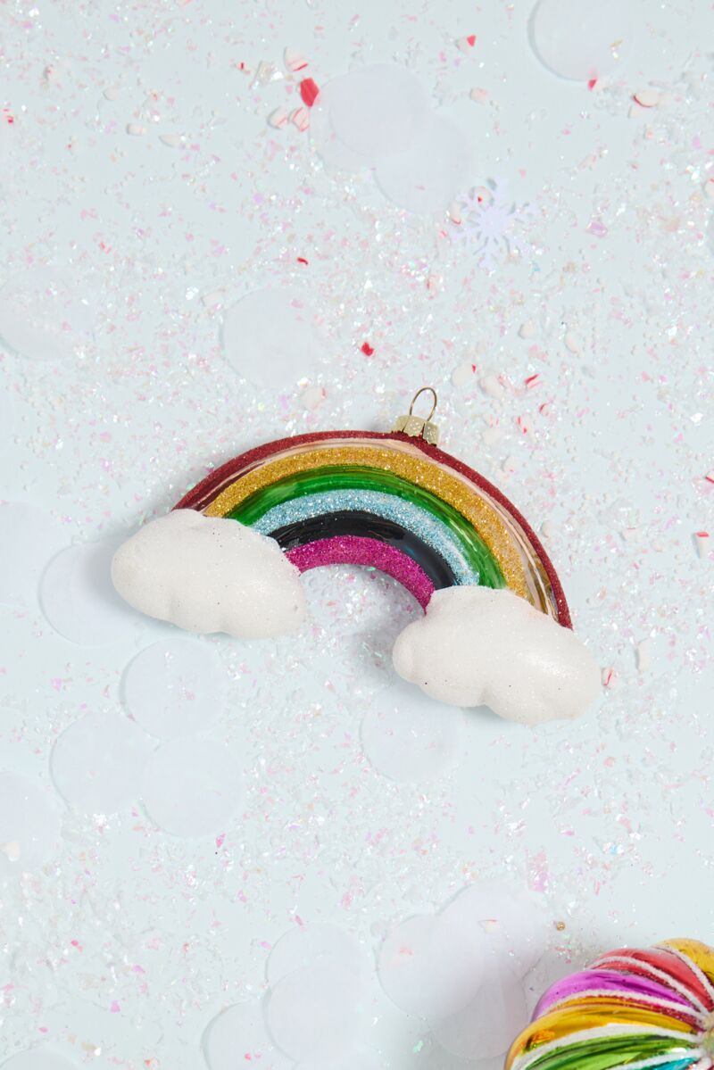 Find your "somewhere over the rainbow" this holiday with these adorable multicolor glass rainbow ornaments! Sold as a set of 6.