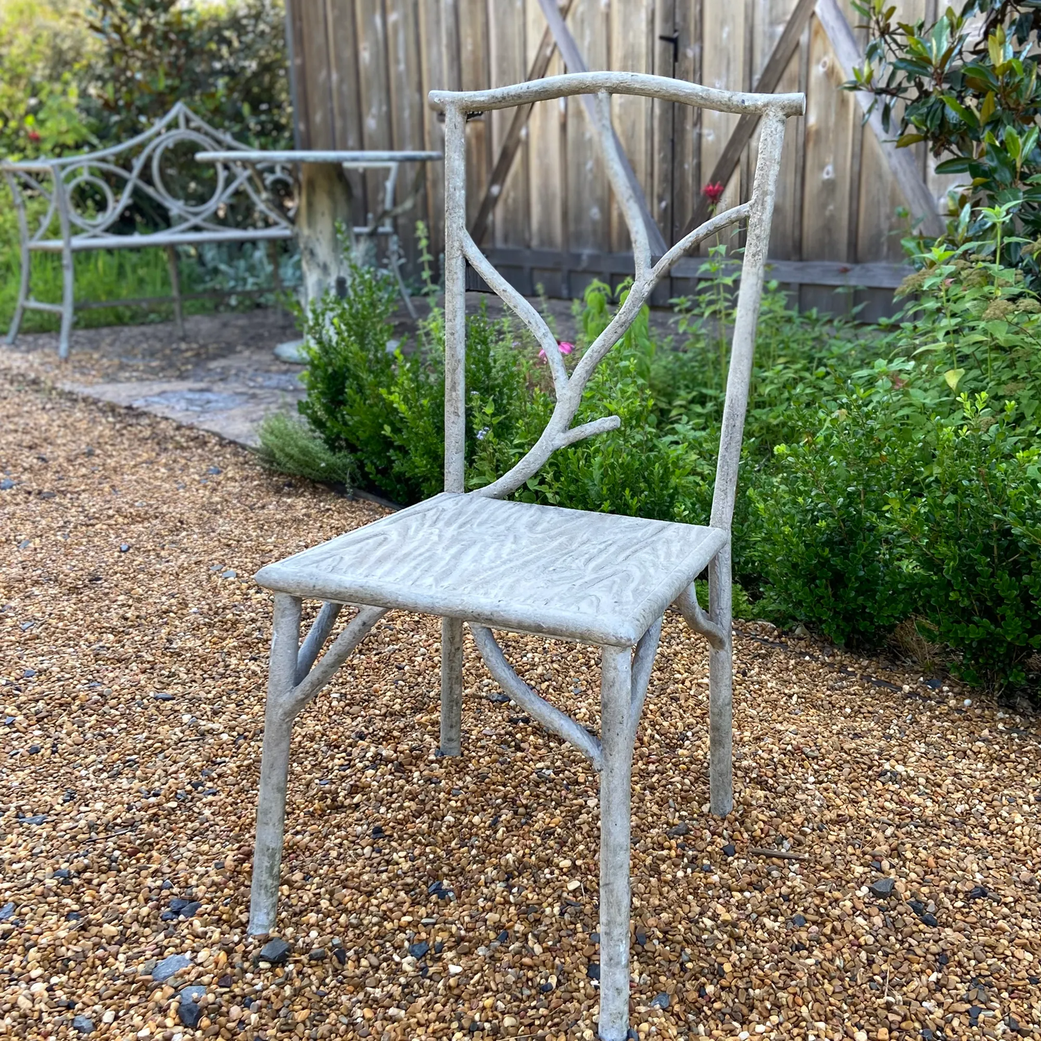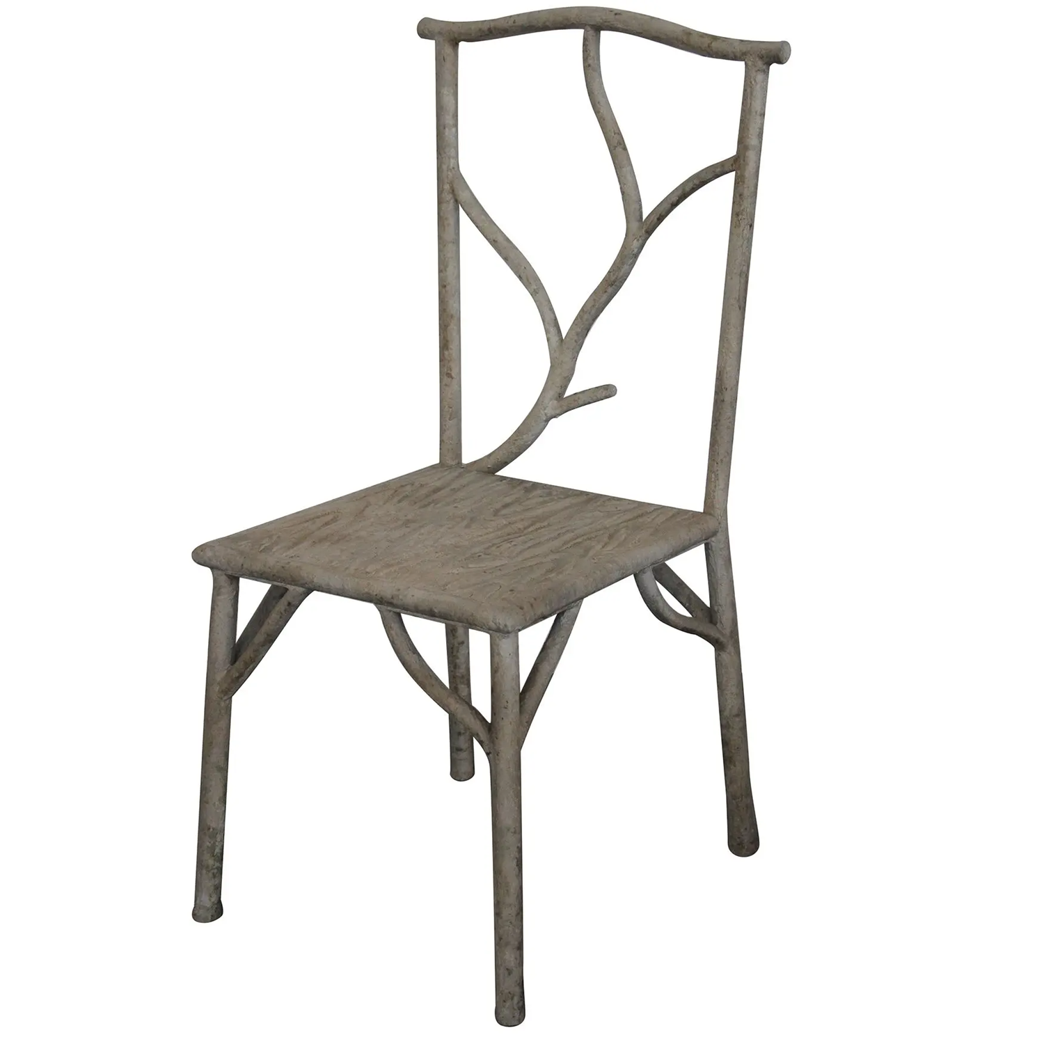 Faux Bois - French for "false wood" is a technique that captures the look of wood using cement or other materials and it is showing up in design everywhere! This faux bois side chair looks great pulled up to any table or as an accent chair in your garden! From Porch View Home's Trellis Collection.