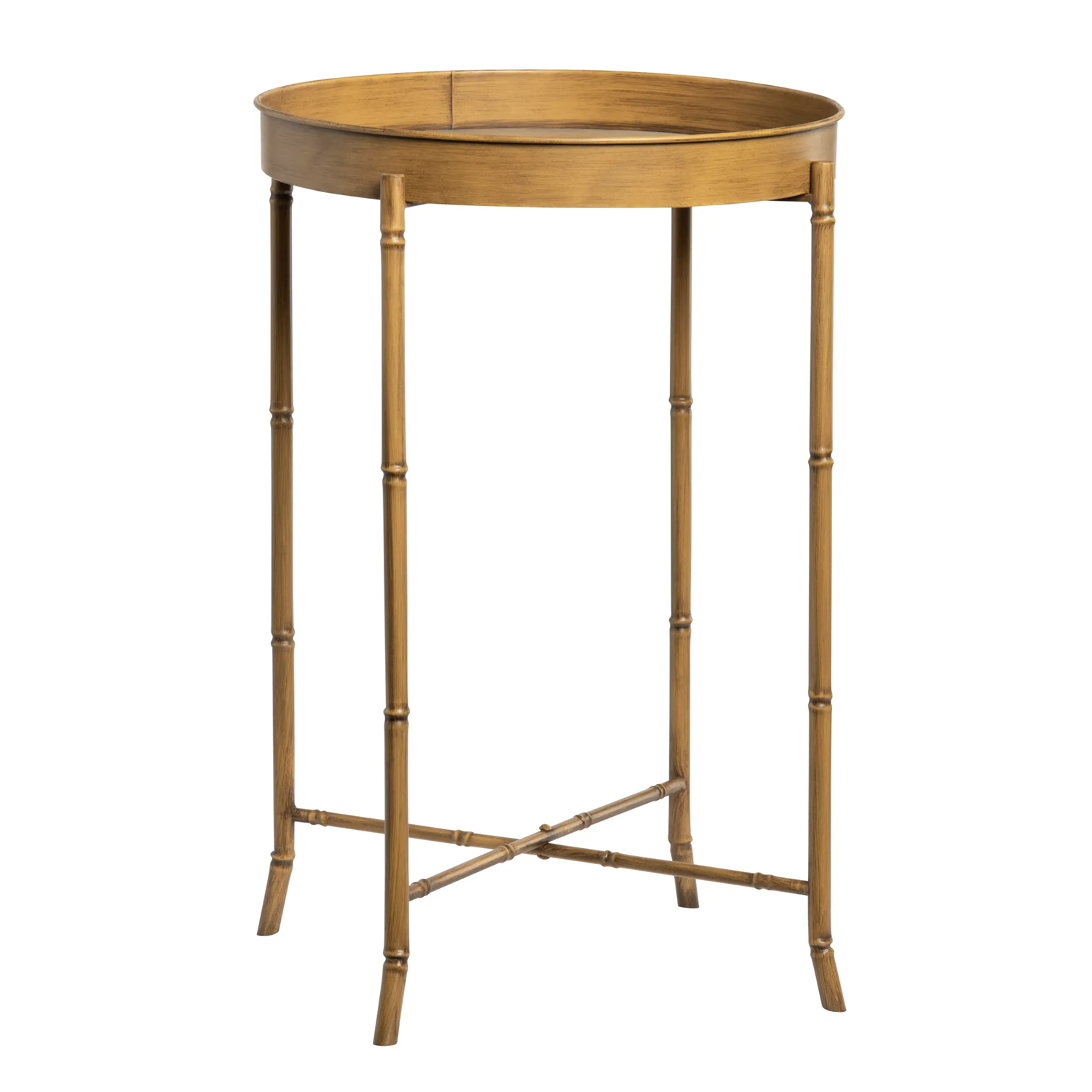 These great metal faux bamboo tea tables have the painted look of bamboo and are the perfect pull up size next to chairs inside or outside. The lift off trays make it easy to serve favorite beverages to guests. From Porch View Home's Trellis Collection. Sold as a set of 2.