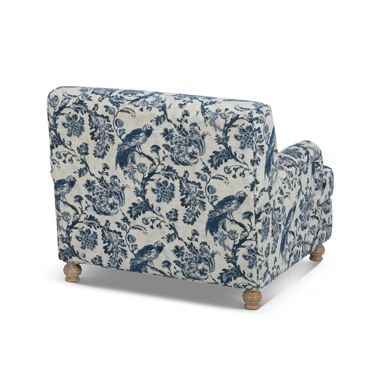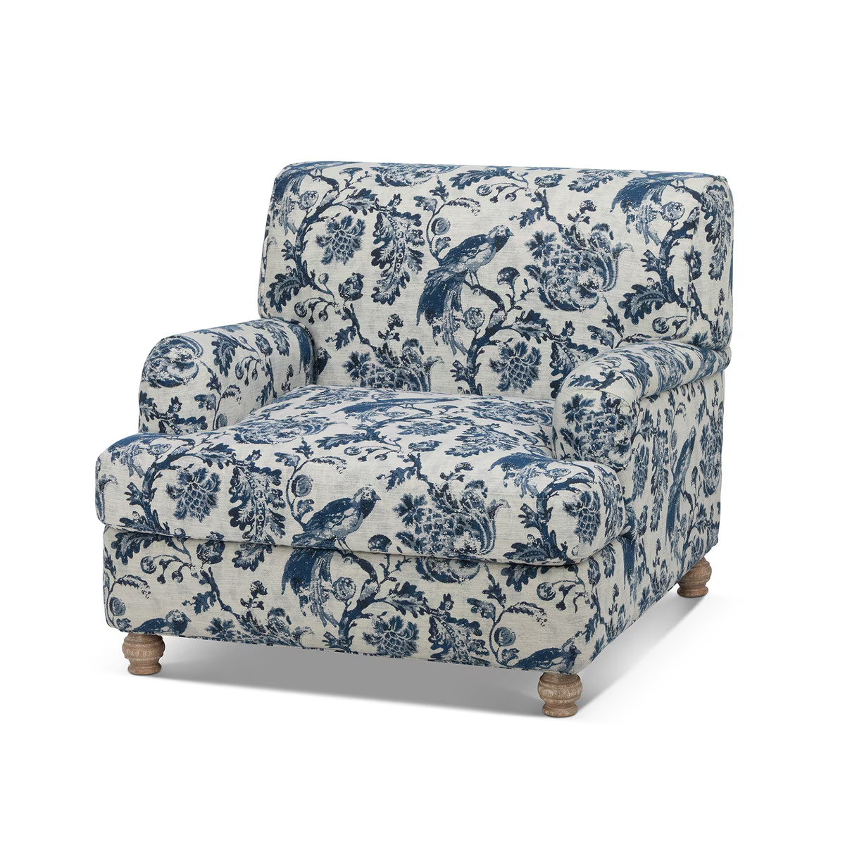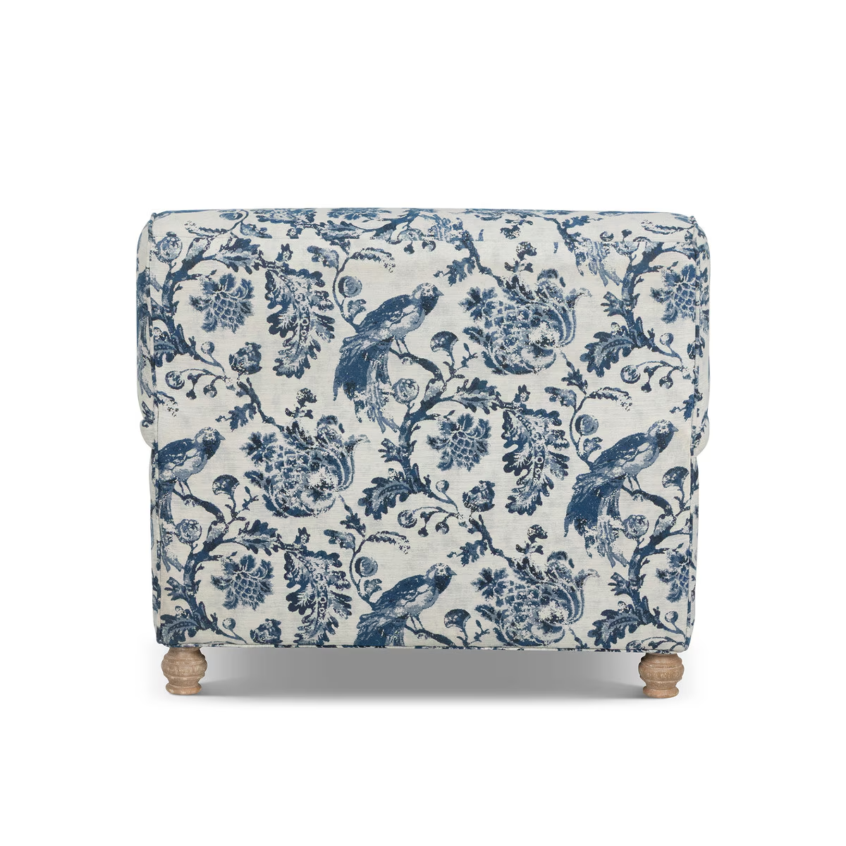 • Fabric & Finish: Bluebird fabric with Driftwood-finished wood feet
