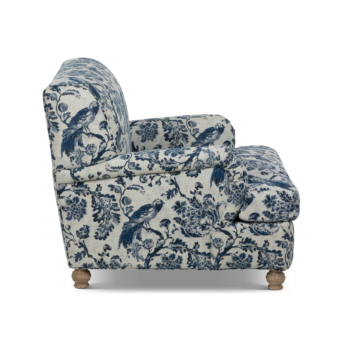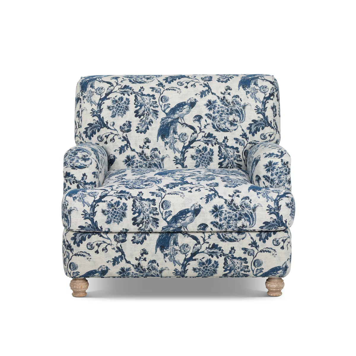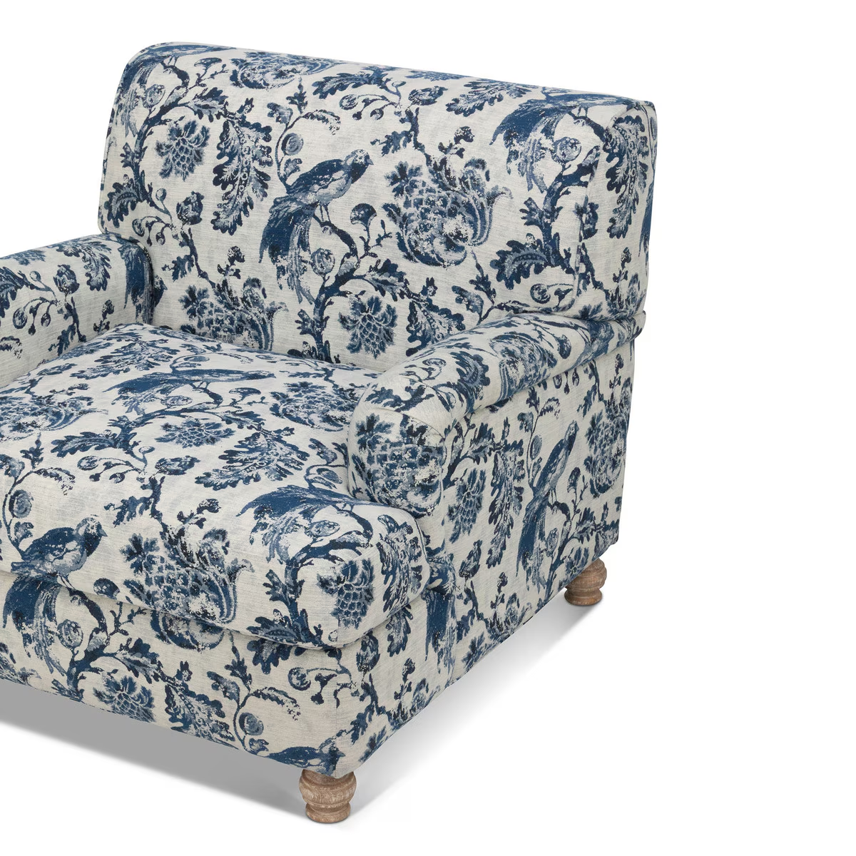 • Fabric & Finish: Bluebird fabric with Driftwood-finished wood feet