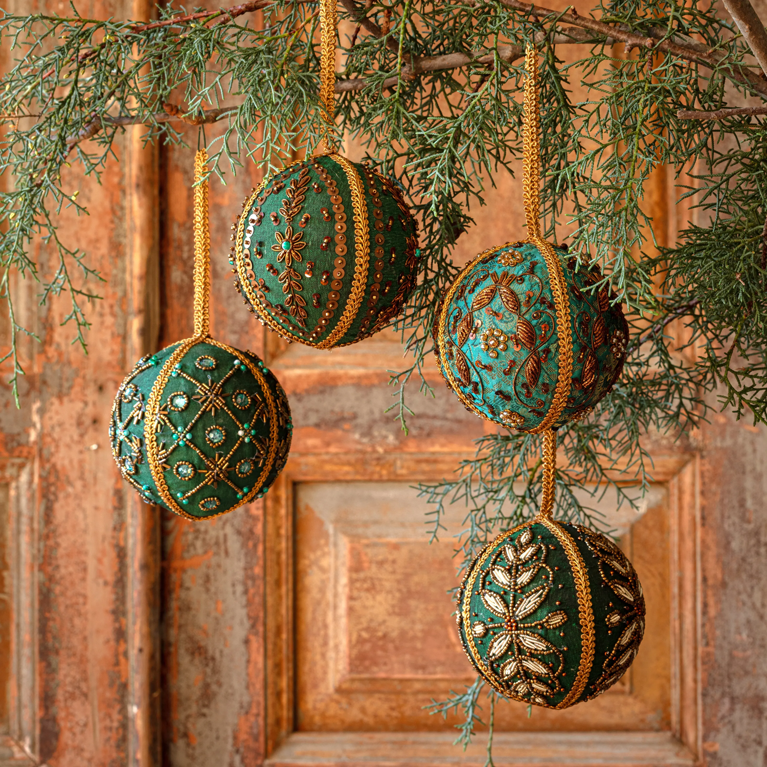 Majestic Embroidered & Jeweled Ornaments 4" Assorted Set/12