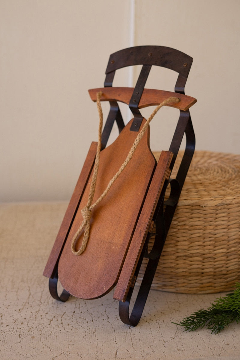 Winter is here! Use this metal and wood Christmas sled for winter decor all through the season. It has a 13" hanger for wall display and measures 20.5" long.