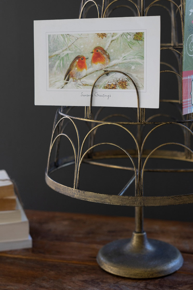 Grab this holder for your holiday cards this year. The star-topped metal Christmas tree card holder works well on a shelf or a table. Various slots hold your cards. 5 card holders (1 on each level).