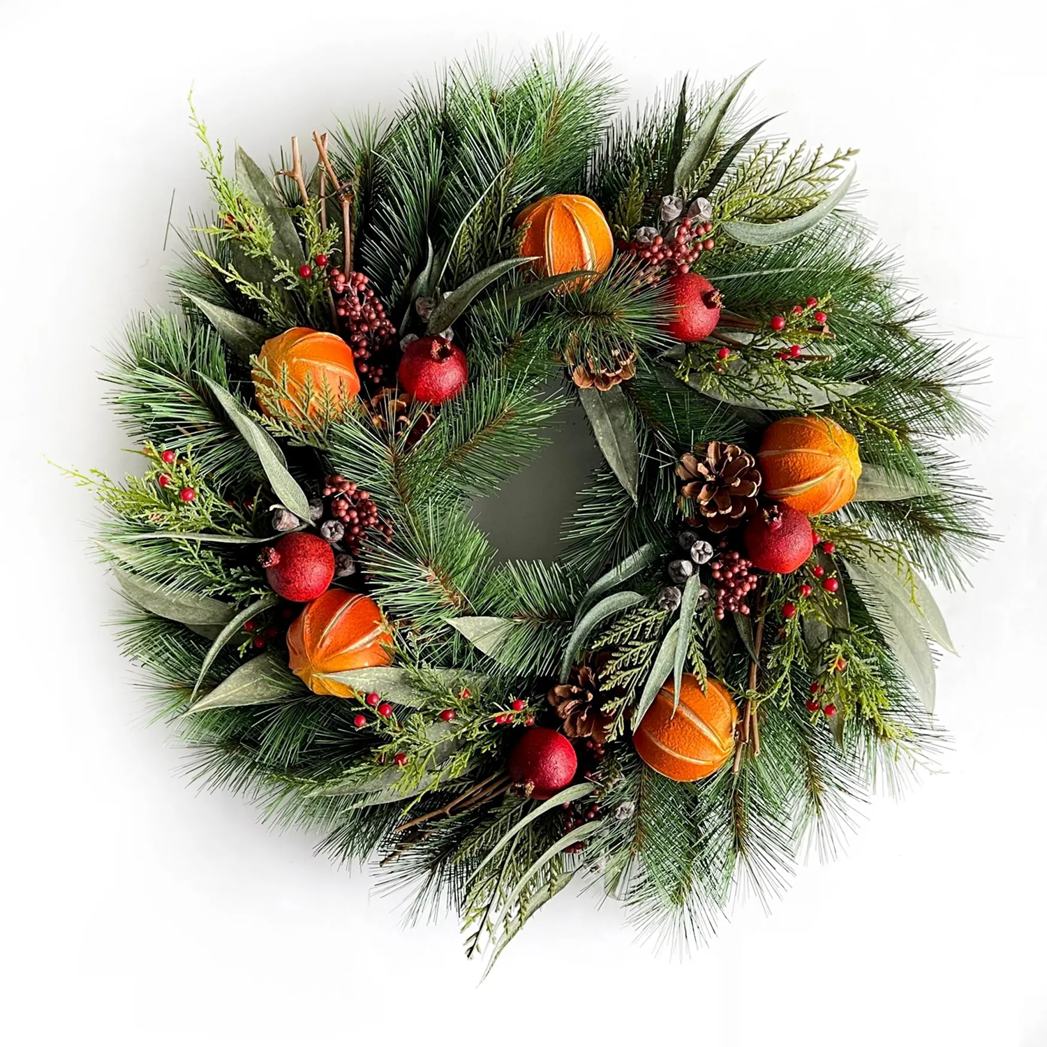 We love these gorgeous Southern Colonial Wreaths with their beautiful types of greenery and accents of oranges, pomegranates, pinecones, and berries! Sold as a set of 2. From Porch View Home's Holiday Collection.