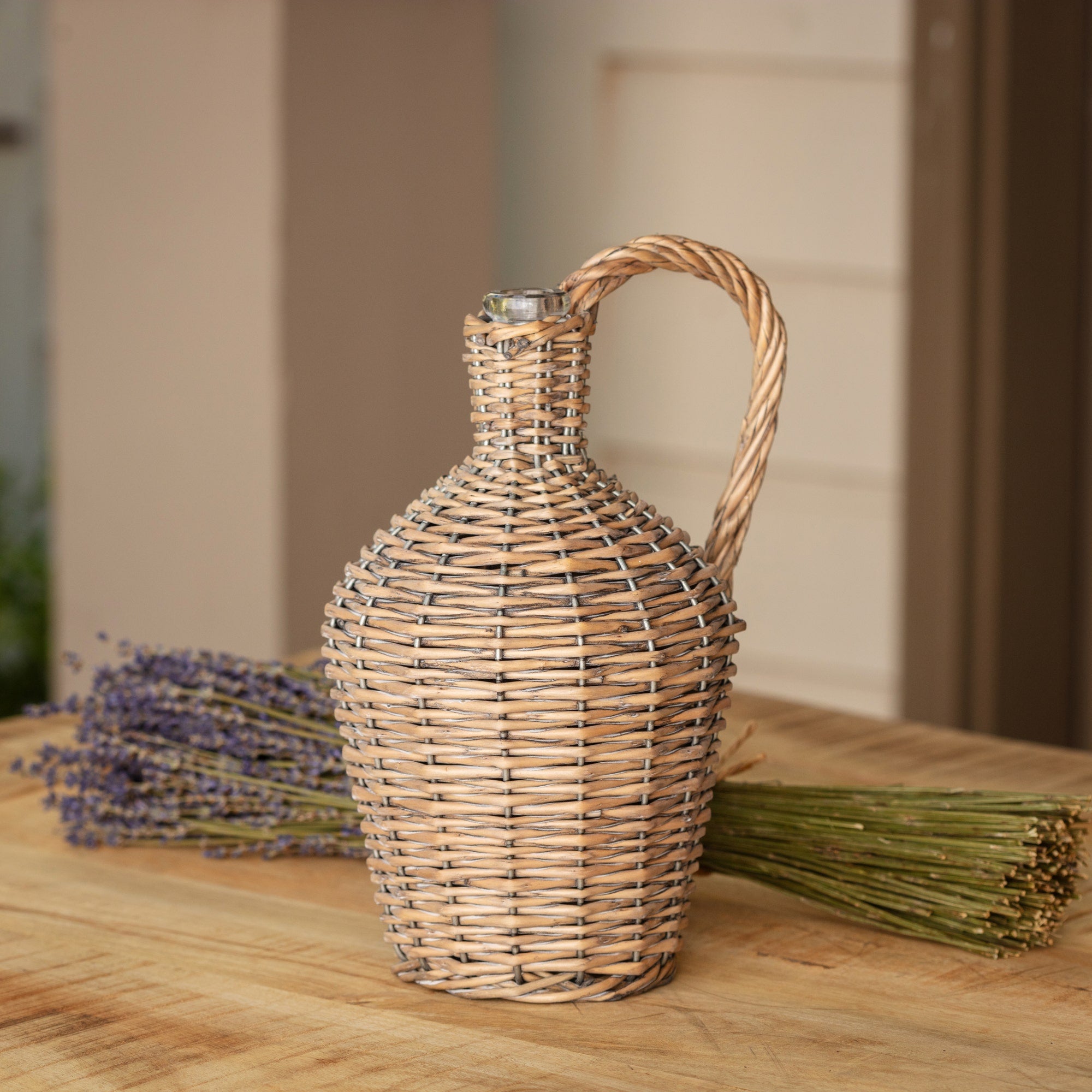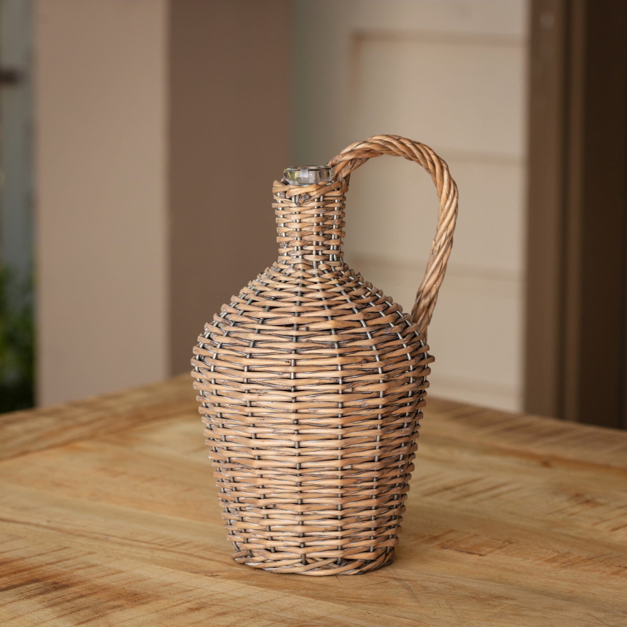 This willow covered vessel adds an old-world touch to any setting. From Porch View Home's Trellis Collection. Sold in a box of 4.